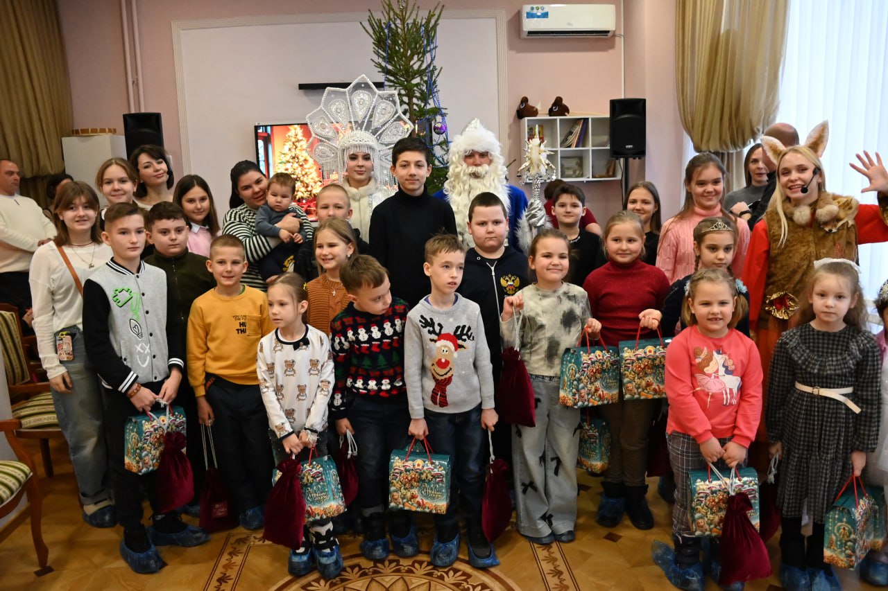 Вместе с Дедом Морозом и Снегурочкой ребята наряжали красавицу-ёлку — особый подарок от Министерства культуры РФ. Зал наполнился музыкой, смехом и аплодисментами нашим артистам.
