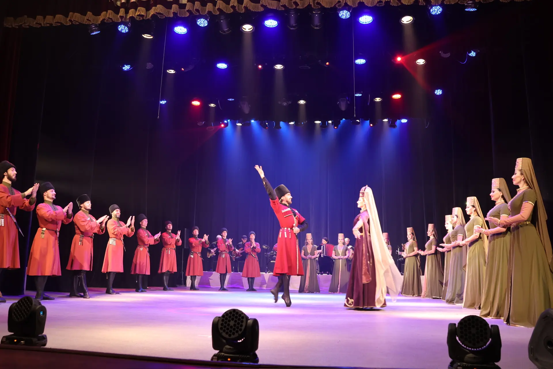 Зрители стали свидетелями настоящего культурного богатства, воплощённого в движении, музыке и костюмах. В программе прозвучали стилизованные хореографические композиции, основанные на глубоком изучении фольклорного материала: от зажигательных лезгинок до лирических и повествовательных танцев. Вся палитра самобытного хореографического искусства Карачаево-Черкесии и Северного Кавказа была ярко представлена на сцене.