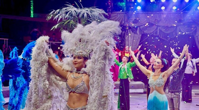 Шоу длится 2,5 часа и полностью погружает в атмосферу жарких тропиков и настоящей цирковой сказки. В программе — акробатические номера, эквилибристика, зрелищная контактная дрессура и выступления с более чем 50 животными: верблюды, дикобразы, еноты...