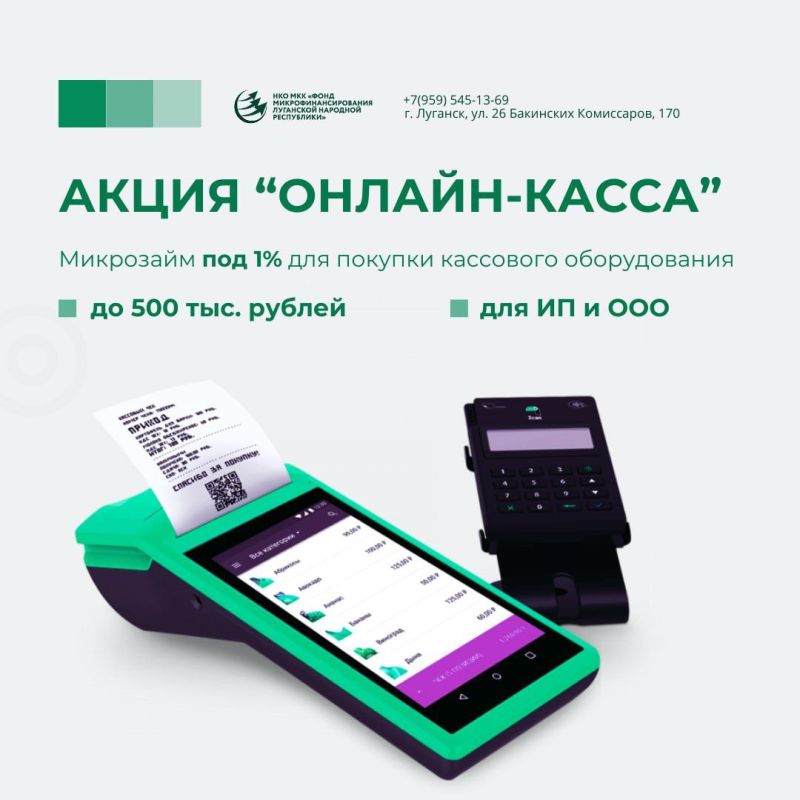 Акция "Онлайн-касса" микрозайм для ИП и ООО на покупку контрольно-кассовой техники под 1% годовых;
