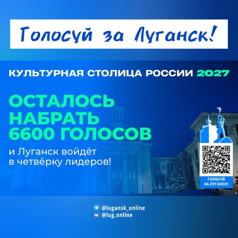 Всего 6600 голосов и Луганск попадет в четверку городов, претендующих на звание культурной столицы России в 2027 году