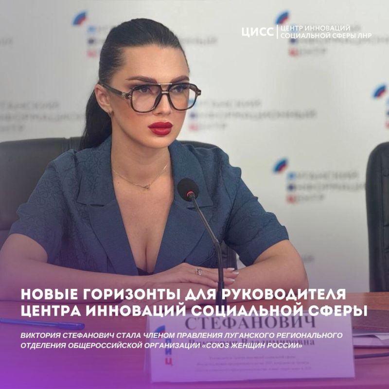 Виктория Стефанович, руководитель Центра инноваций социальной сферы Фонда поддержки предпринимательства ЛНР и лидер Сообщества «Росмолодежь.Предпрнимай» в регионе стала членом Правления Луганского регионального отделения Общероссийской общественно-государственной организации «Союз женщин России», а также советником председателя по вопросам предпринимательства.