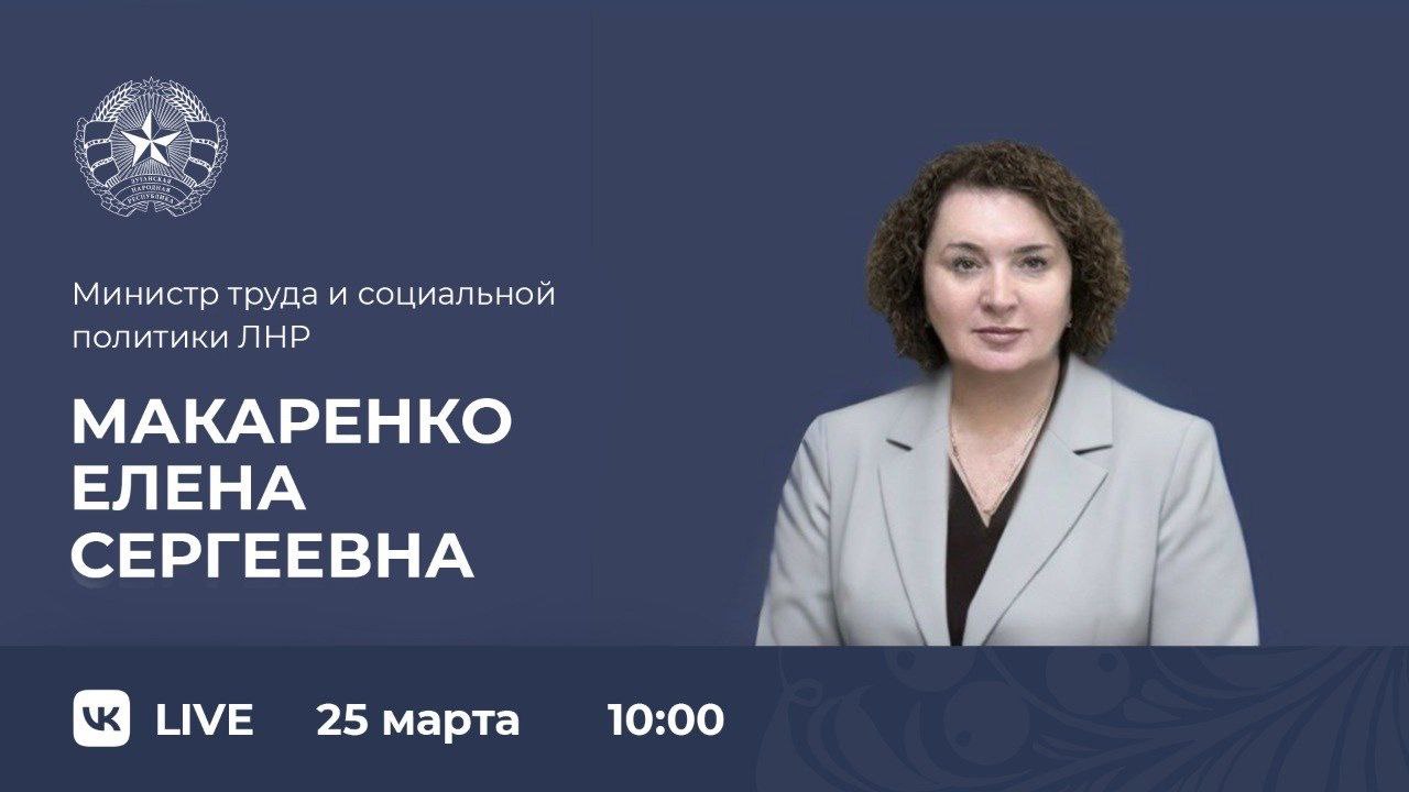 Министр труда и социальной политики Луганской Народной Республики Елена Макаренко проведёт прямую линию с жителями ЛНР.