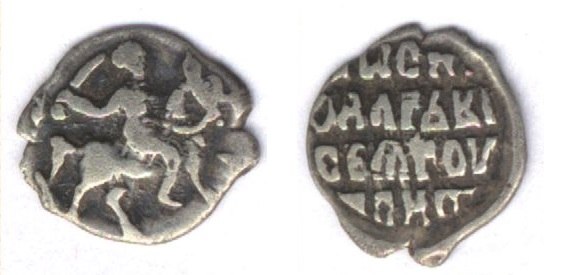 После смерти Ярослава чеканка прекратилась и возобновилась лишь в XIV веке при Дмитрии Донском. По требованию ханов Золотой орды, русские князья обязаны были помещать на монетах не только свои имена, но и имена золотордынских ханов, написанные по-арабски. Серебряные монеты назывались «деньга» или «денга», от татарско-персидского слова «тенга», означающего монету.