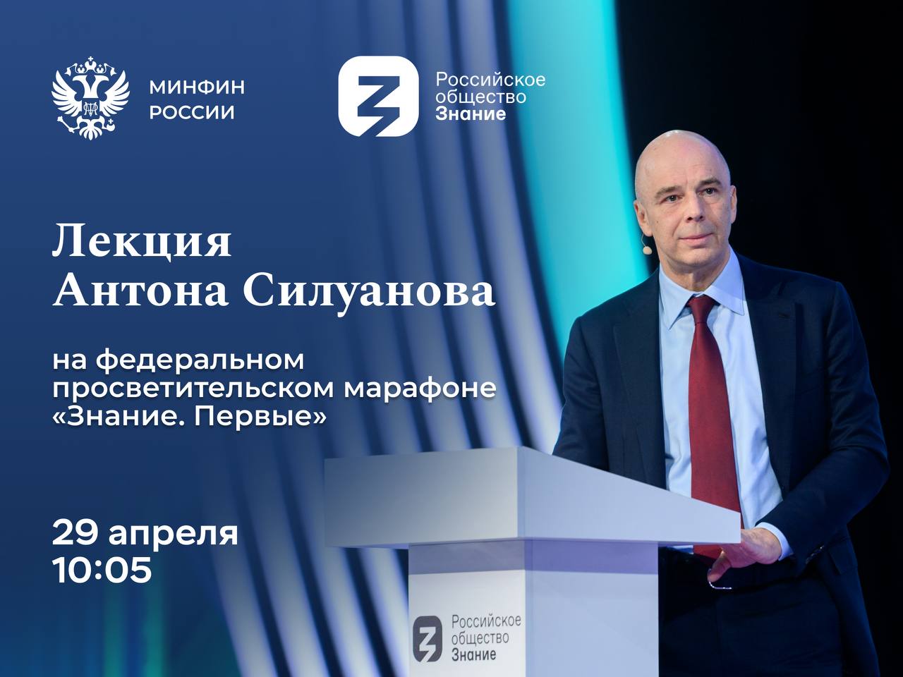 Министр финансов выступит на марафоне «Знание. Первые» с лекцией на тему: «От финансовой грамотности к устойчивой экономике».