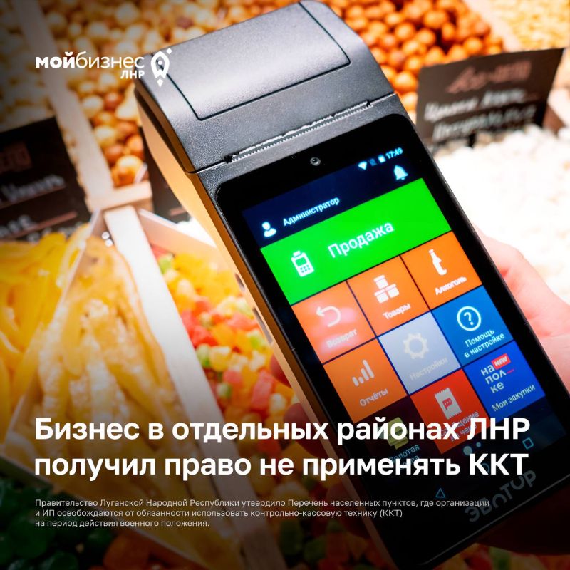 — Правительство ЛНР утвердило перечень населенных пунктов, где бизнес может не применять контрольно-кассовую технику (ККТ) на период военного положения. Условие: по запросу покупателя предприниматель обязан выдать расчетный документ...