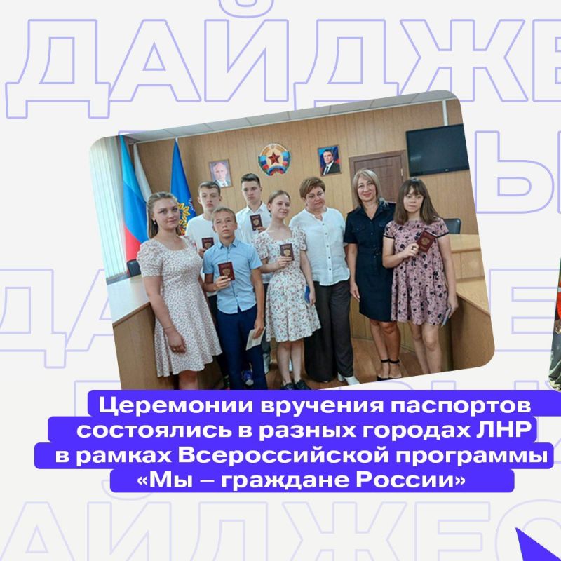 Подборка положительных эмоций До августа осталось два дня, поэтому наслаждаемся последними денёчками июля и смотрим, как прошёл месяц у Первых ЛНРЦеремонии вручения паспортов состоялись в разных городах ЛНР в рамках Всероссийской программы «Мы –...