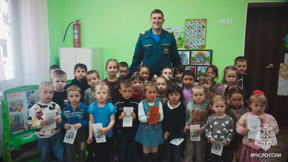 Сюрпризом для детей стал визит настоящего героя – пожарного Максима Геннадиевича Лычаного (ОП по охране пгт. Петровка 29 ПСЧ). Он рассказал малышам: