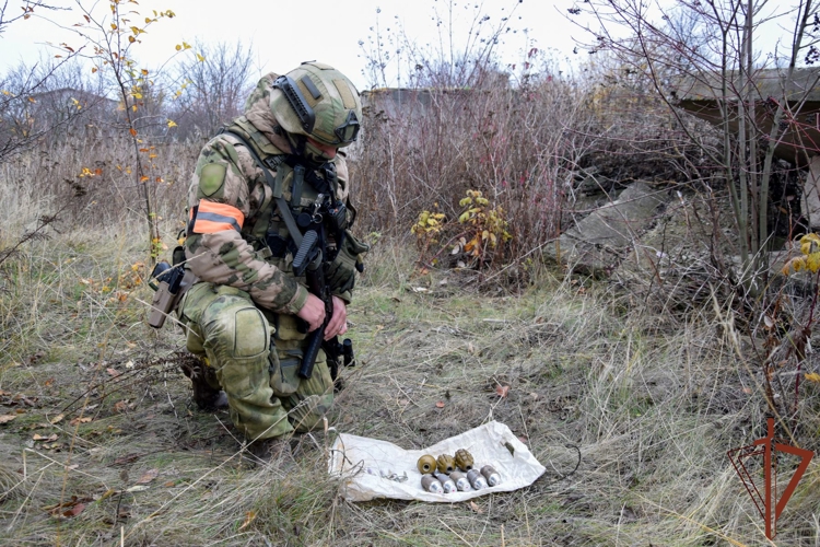 Саперы Росгвардии изъяли из тайника гранаты и осколочные боеприпасы для гранатомета.
