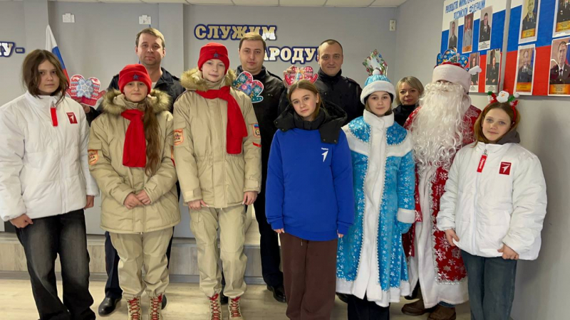 Ребятишки алчевской школы №15 и юнармейского отряда «Ратник» приготовили особенный сюрприз для полицейских. В образе Деда Мороза и Снегурочки дети поздравили стражей правопорядка открытками с тёплыми пожеланиями.