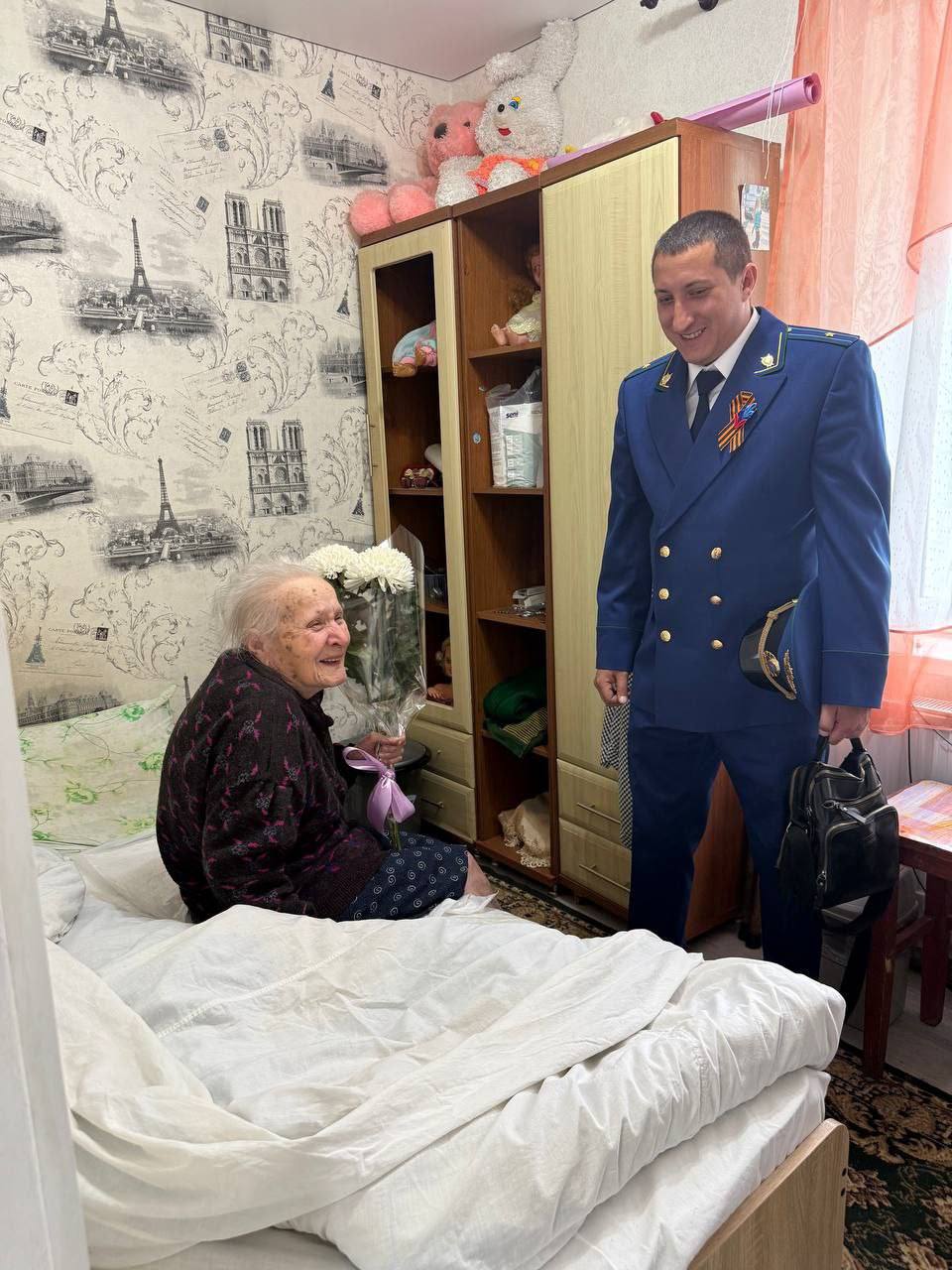 Прокуратура Меловского района в день 83-й годовщины освобождения Меловского муниципального округа от немецко-фашистских захватчиков посетила 100-летнего ветерана Великой Отечественной войны Чеузову Анну Савельевну.