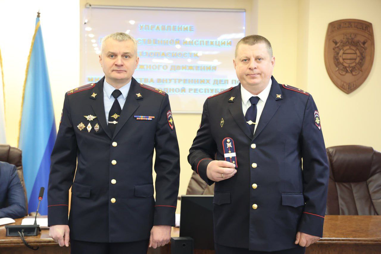 Дорожным полицейским вручили нагрудные знаки МВД России «За отличие в службе» и очередные специальные звания.
