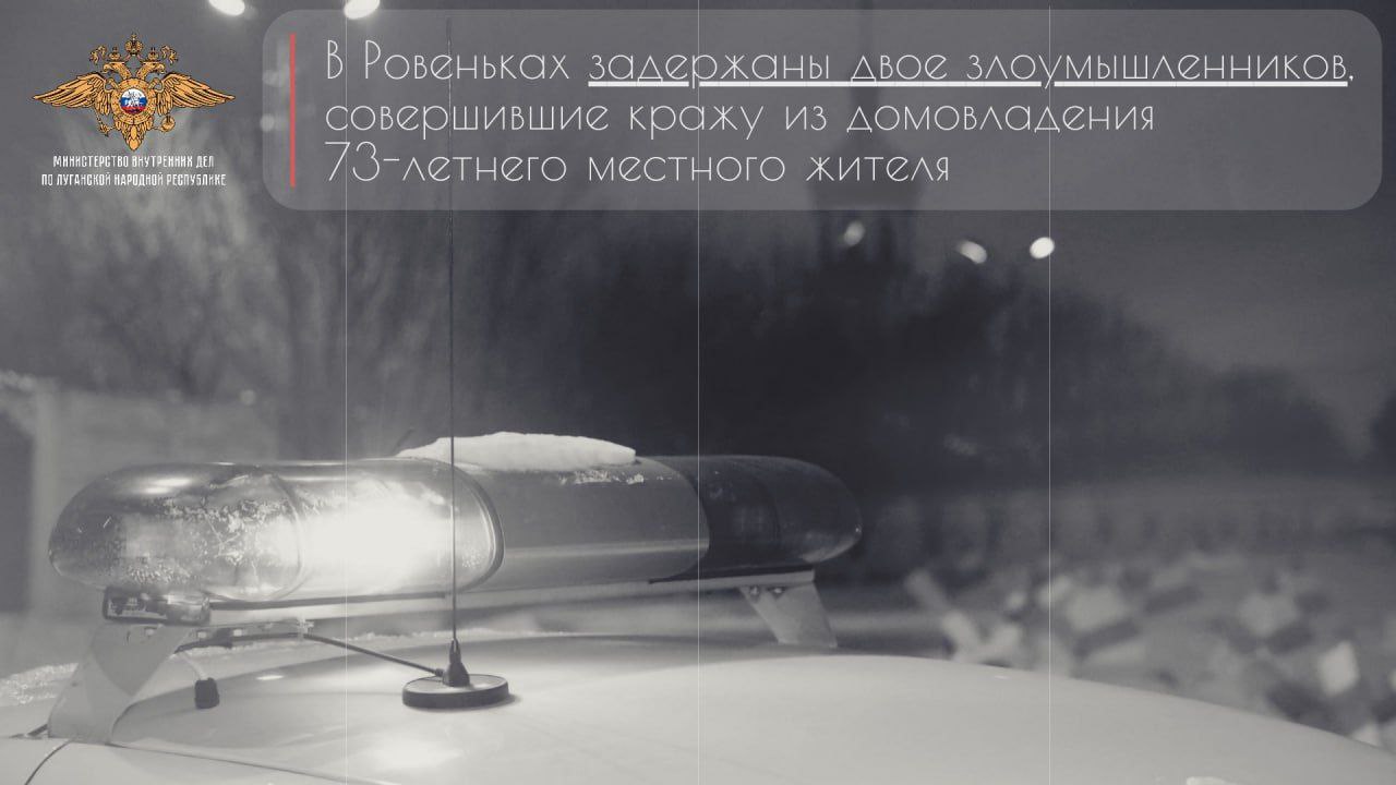Сотрудником отдела уголовного розыска ОМВД России «Ровеньковский» при силовой поддержке Росгвардии были задержаны причастные к краже с незаконным проникновением в жилище – 20-летний и 33-летний ровеньчане.