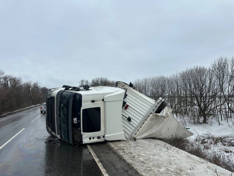 На автодороге Антрацит Должанский произошло чрезвычайное происшествие: водитель грузовой фуры не выбрал безопасную скорость движения, не учёл погодные и дорожные условия, в результате чего не справился с управлением и выехал на левую обочину, где совершил опрокидывание транспортного средства. Тем самым он оказался заблокированным в машине и не мог самостоятельно выбраться из кабины. На помощь мужчине пришли сотрудники ОГИБДД Отдела МВД России Свердловский, оперативно прибывшие на место происшествия после сигнала о случившемся.