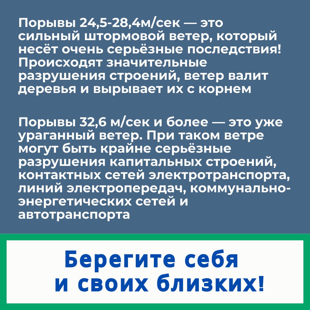 Погода бывает непредсказуемой, и сильный ветер – не редкость. Чтобы обезопасить себя и своих близких, давайте вспомним несколько простых, но очень важных правил. На улице будьте особенно внимательны: избегайте шатких конструкций, деревьев и рекламных щитов. Берегите себя!