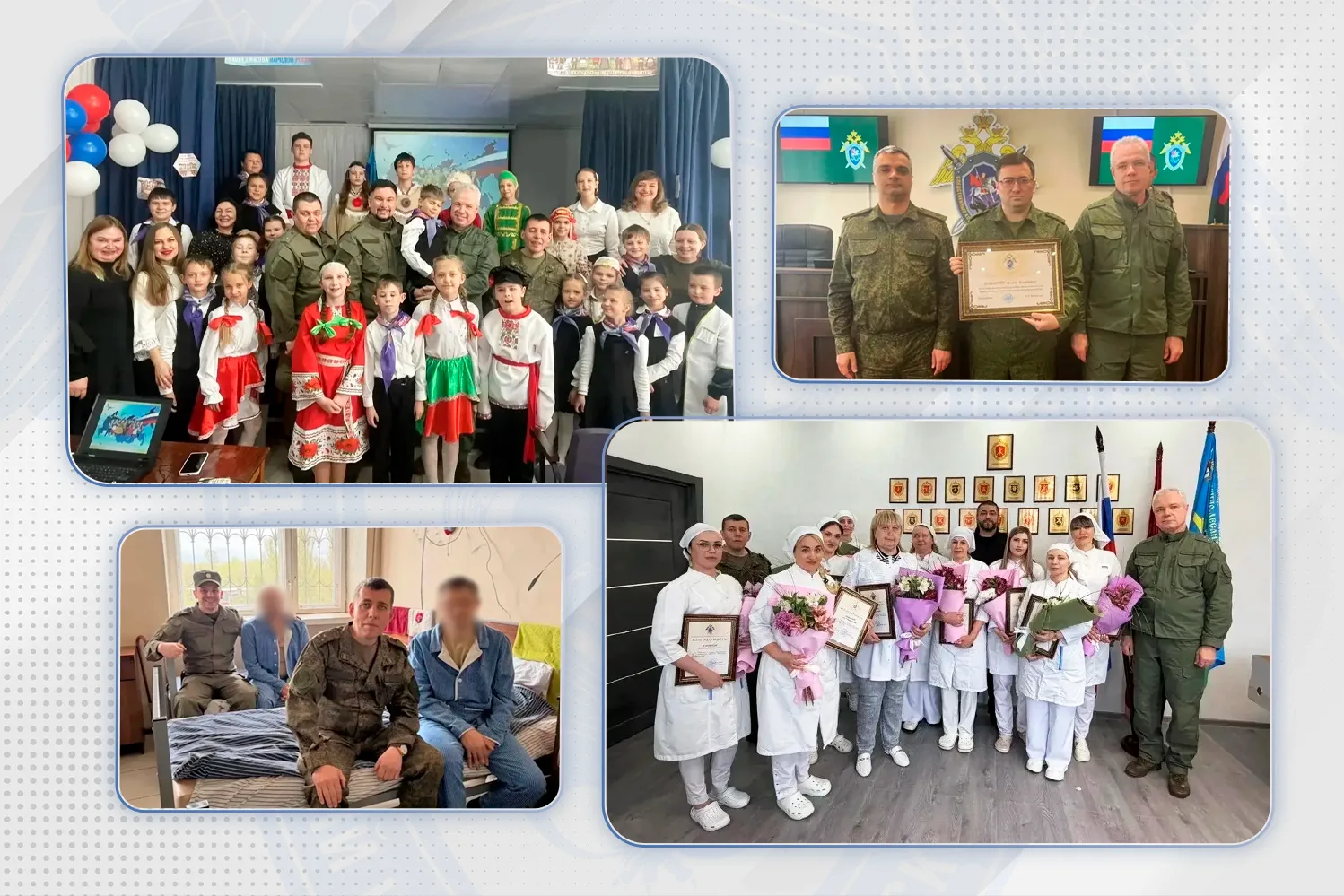 Кроме того, сотрудники ведомства побывали в военном госпитале, где проходят лечение раненые бойцы. Гости навестили военнослужащих, передали им подарки и выразили признательность медицинскому персоналу за их самоотверженный труд и внимание к нашим героическим воинам. Госпиталю были переданы средства для передвижения, носилки и другие необходимые предметы. Персонал учреждения выразил благодарность руководству Следственного комитета России за многолетнюю поддержку.