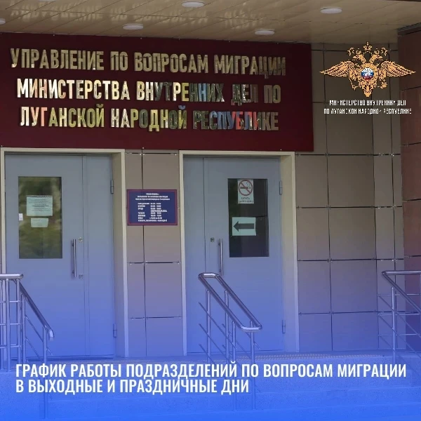 График работы территориальных подразделений по вопросам миграции МВД по Луганской Народной Республике в выходные и праздничные дни.