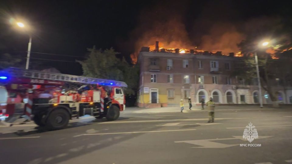 МОСКВА, 15 окт - РИА Новости. Чердак и крыша горят в жилом многоквартирном доме в Луганске на площади в 1 тысячу квадратных метров, жильцов эвакуируют, сообщила пресс-служба МЧС России. «"Спасатели МЧС России работают на месте пожара в Луганске....