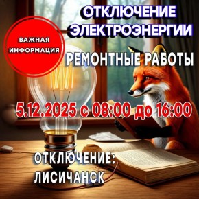 Администрация муниципального образования городской округ город Лисичанск Луганской Народной Республики информирует потребителей о плановом отключении электроэнергии в связи с ремонтными работами!05.12.2025 с 08:00...