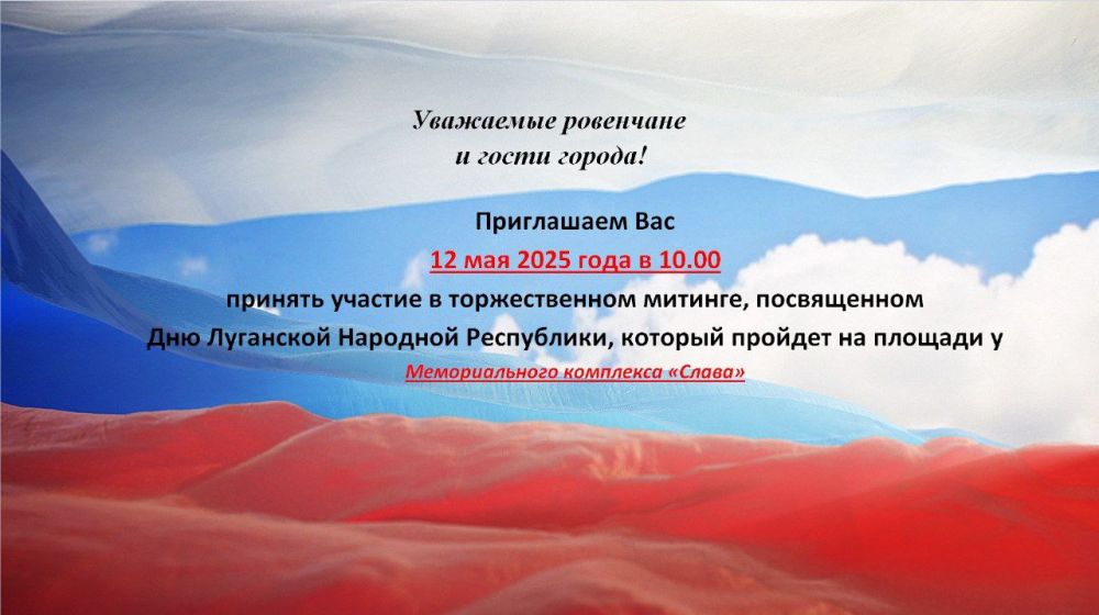 Приглашаю ровенчан и гостей города принять участие в мероприятиях, посвященных Дню образования Луганской Народной Республики.