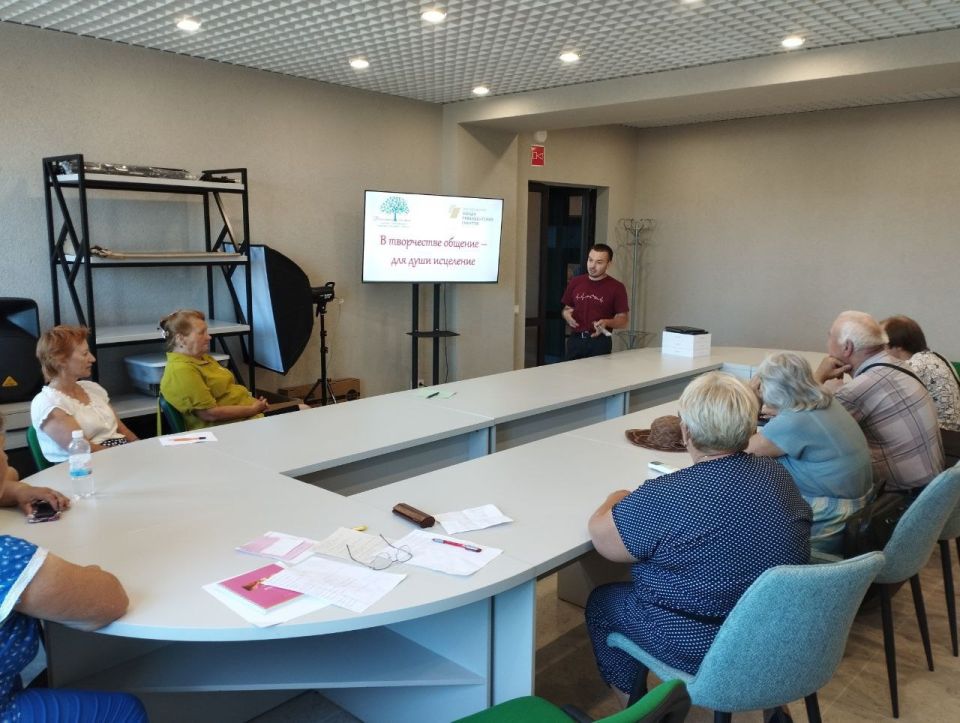 В рамках проекта "В творчестве общение-для души исцеление" состоялась первая встреча с участниками проекта, на которой Анатолий Мужиченко представил присутствующим команду проекта Елена Коротких - руководитель творческих кружков и Николая Соболева, IT- специалиста, руководителя кружка "Курсы мобильной и компьютерной грамотности", ознакомил с целями и задачами проекта, рассказал о направлениях мероприятий и целевой группе участников.