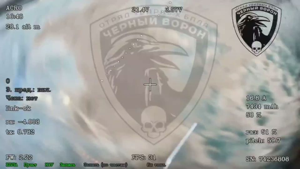 Уничтожение расчетами отряда ударных БПЛА «Чёрный ворон» фашистского танка и САУ.
