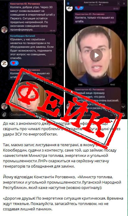 Обращаем внимание, что данная информация не соответствует действительности. Руководство Министерства топлива, энергетики и угольной промышленности ЛНР не выпускало подобных заявлений, а ситуация с энергетическим оборудованием находится под контролем.