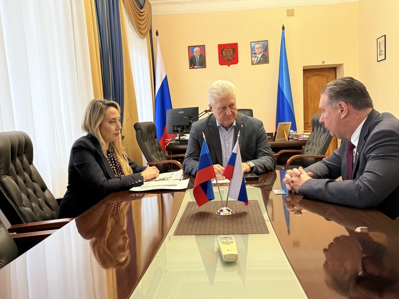 На встрече также присутствовали руководитель управления приемной кампании Федор Кириллов, представитель ВГЛТУ в ЛНР Наталья Берестова, заместитель Главы Администрации Татьяна Галушкина, Председатель Совета Краснодонского муниципального округа Владимир Шавлай, председатель молодежного парламента Дарья Иванова.