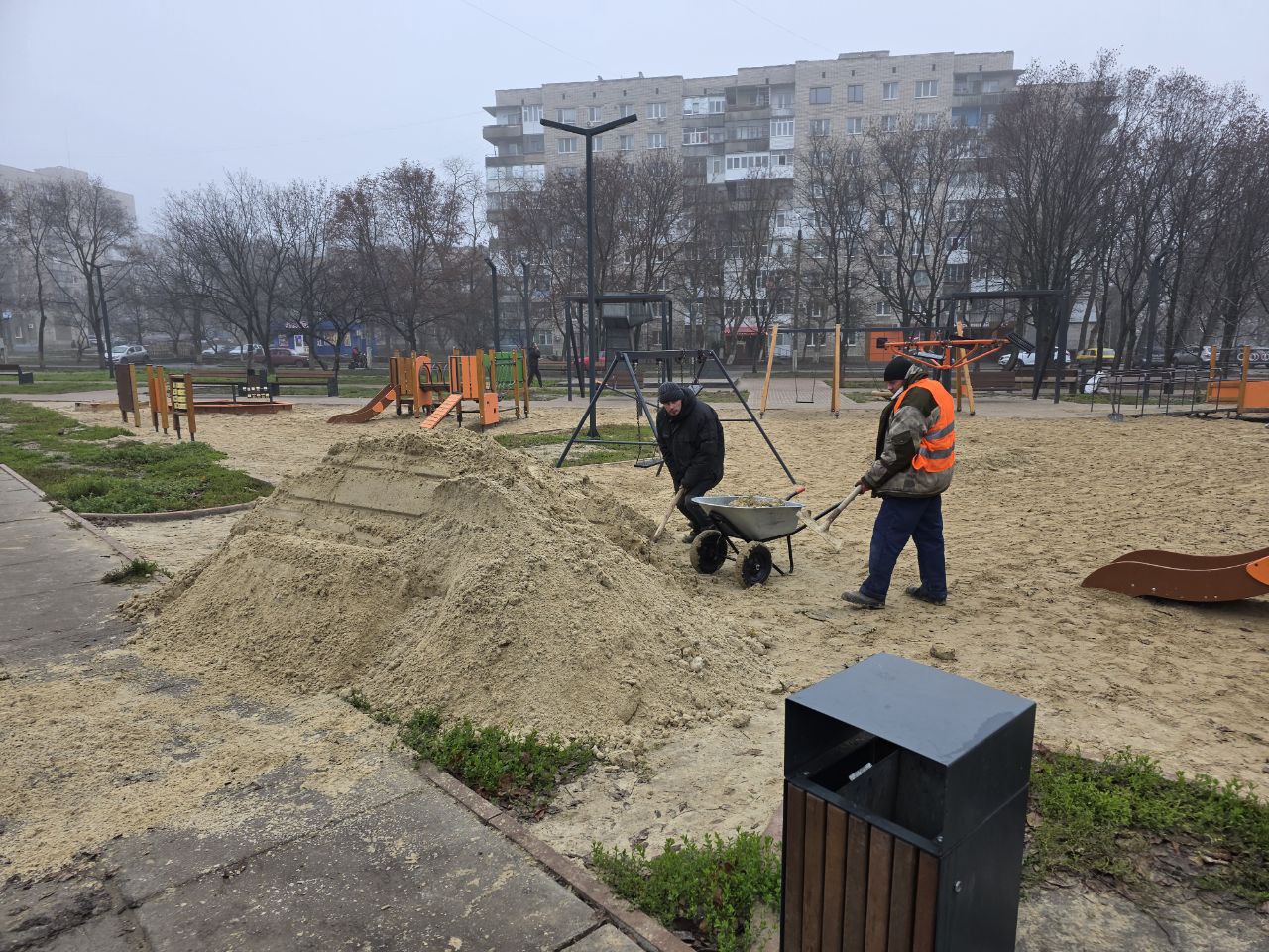 Также, поддерживаем чистоту и порядок на благоустроенной территории "Черный тюльпан". Работниками МУП "ЖЭК" выполнены работы по уборке и вывозу упавшей листвы, ветвей мелкого мусора и смёта с пешеходных дорожек, а также для поддержания в надлежащем состоянии спортивной площадки завезен и распланирован песок.