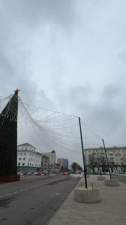 Новый год близко: коммунальщики практически завершили установку золотого шатра над главной елкой Республики
