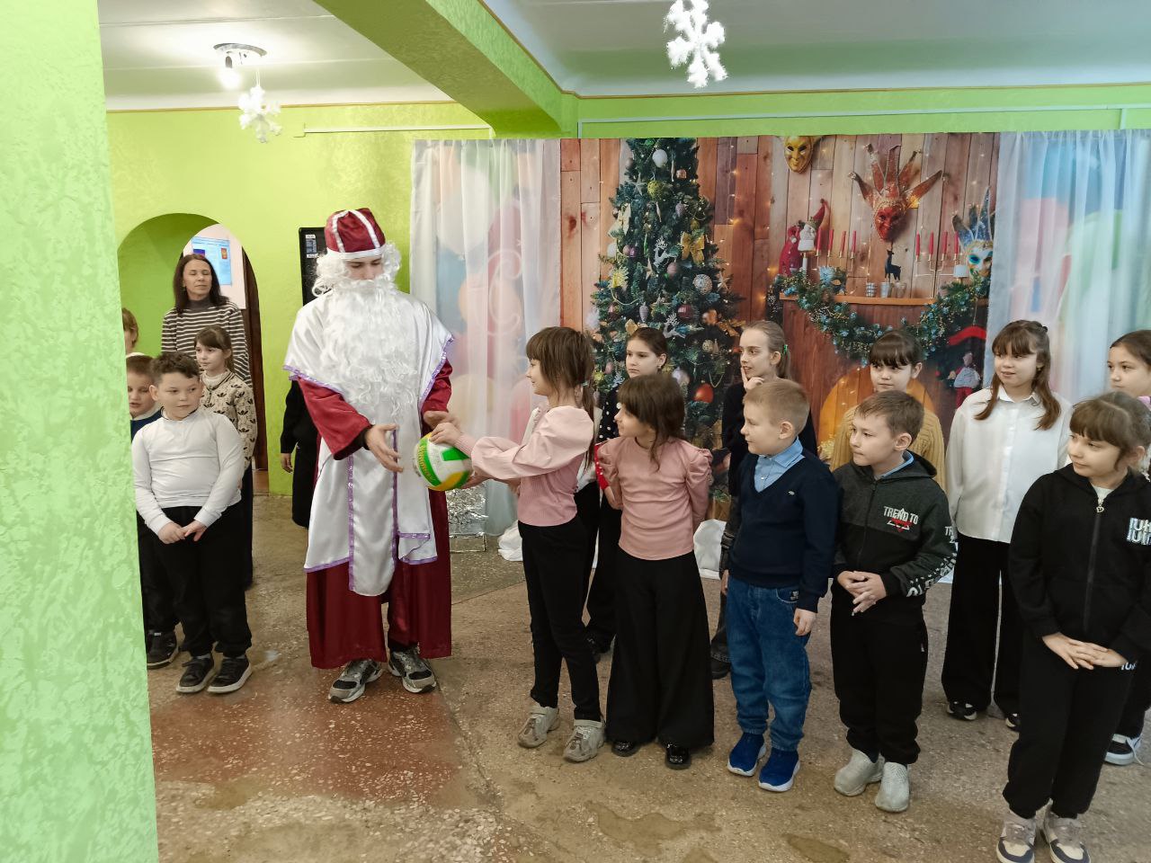 В поселке Новодарьевка, в Доме культуры имени Ленина, для учеников младших классов Новодарьевской школы имени В. Д. Луганского прошло праздничное представление "Эта ночь святая", посвященное Дню Святого Николая.