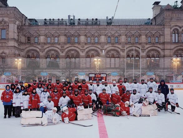 Сегодня декабря на ГУМ-катке в Москве прошёл хоккейный турнир, в котором юные спортсмены из Донбасса и Новороссии сыграли с командой «Звезда России» и известными хоккеистами