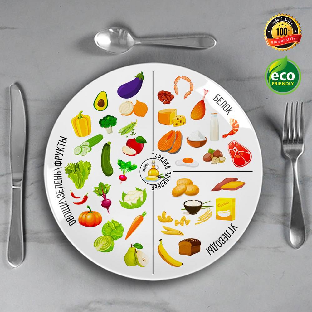 Если правильный дневной рацион здорового человека представить в виде большой тарелки, то она будет выглядеть так: половина – овощи и фрукты (клетчатка), вторая – белки, жиры и углеводы в соотношении 40-2-40.