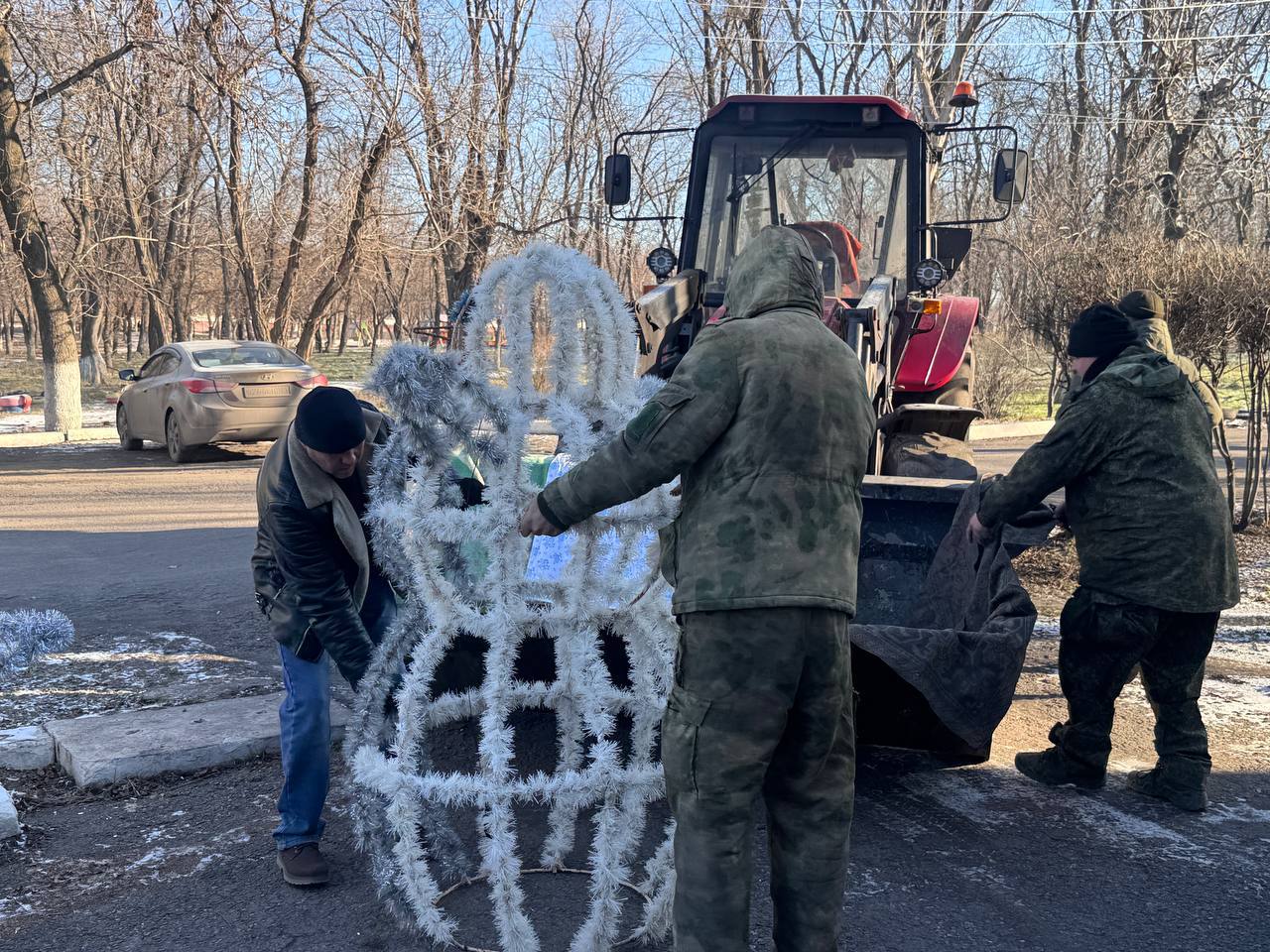 Сегодня на одной из самых оживлённых улиц пгт Дзержинский появилась традиционная новогодняя инсталляция.