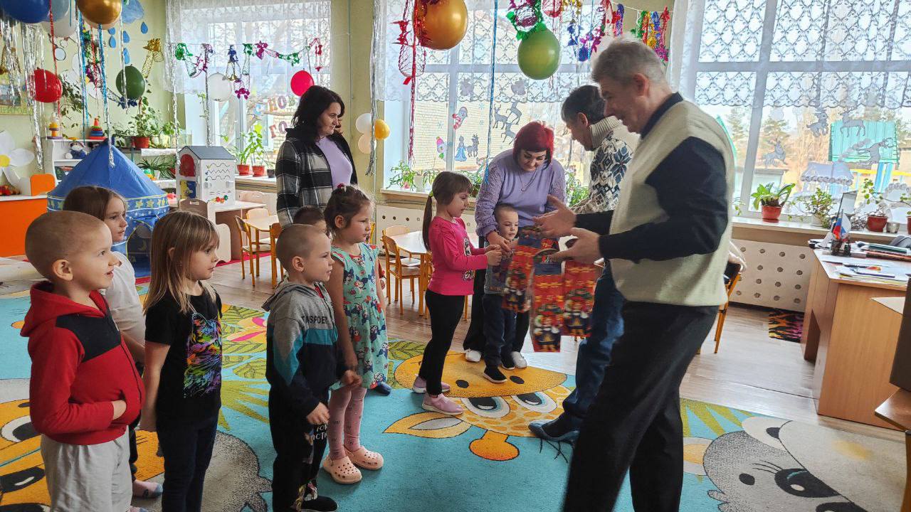 Депутат Народного Совета Луганской Народной Республики от КПРФ Виктор Иванович Щекатунов, депутат Луганского городского совета от КПРФ Валентин Владленович Попов, помощник депутата Народного Совета ЛНР Дарья Александровна Гаман и начальник Тепловского отдела жизнеобеспечения Татьяна Александровна Прологаева поздравили воспитанников детского сада «Сказка» с праздником Старого Нового Года!