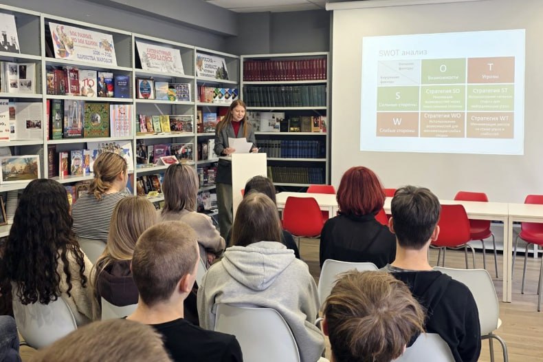 В преддверии Дня студента, стены Свердловской центральной библиотеки имени В.П. Астафьева наполнились энергией перемен. В культурно-просветительском центре «Русское слово» прошла встреча с учениками 10 класса Свердловского лицея №1 имени сестер-подпольщиц Лидии и Светланы Бабарицких, посвященная самому важному решению – выбору жизненного пути. Это был не просто лекторий, а настоящий интенсив по проектированию будущего.