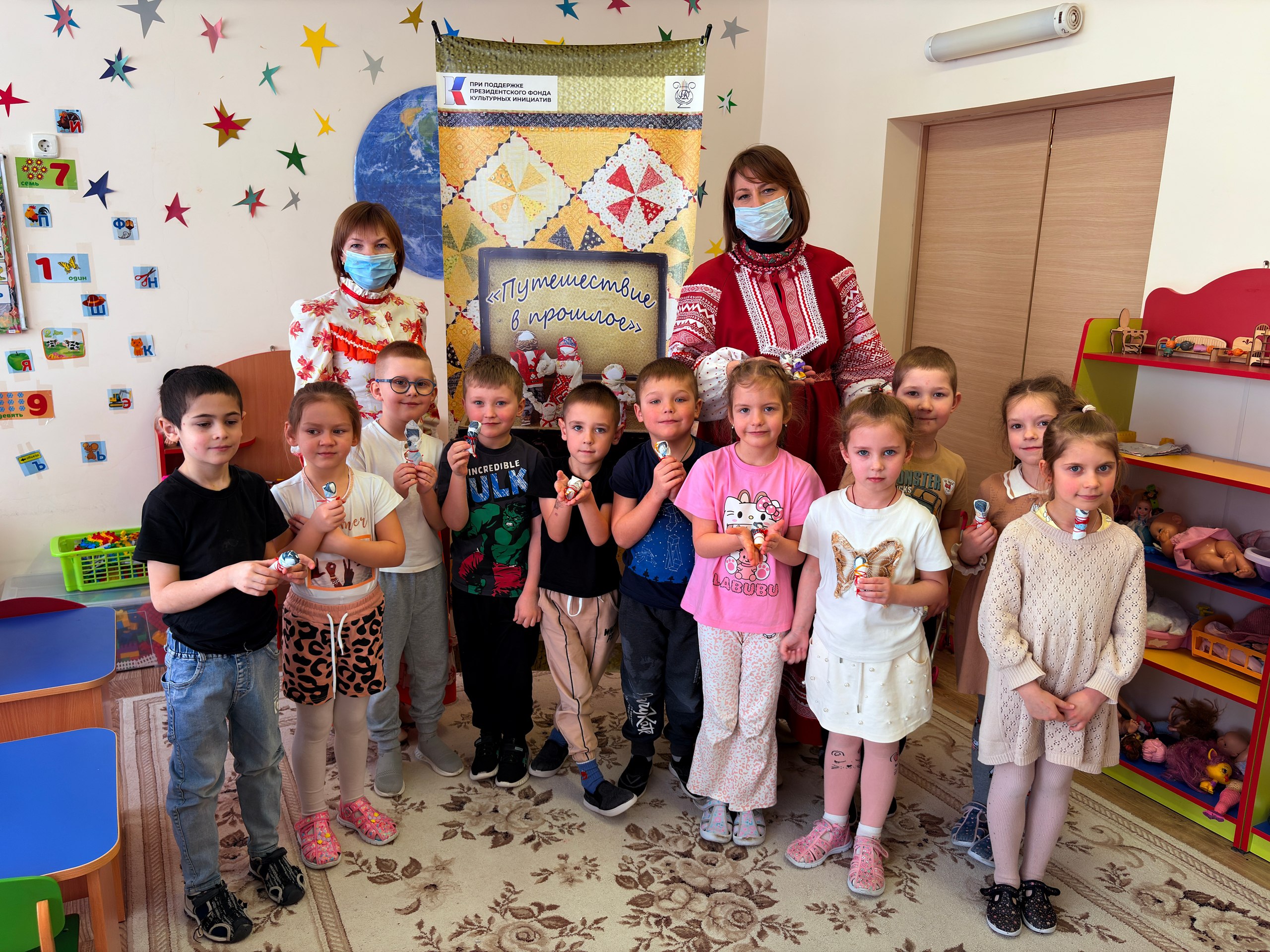 27 января для ребят старшей группы Новосветловского детского сада "Аленка" в рамках проекта "Новосветловский РДК" "Путешествие в прошлое" состоялся мастер-класс по изготовлению традиционного народного оберега "Куклы пеленашка".