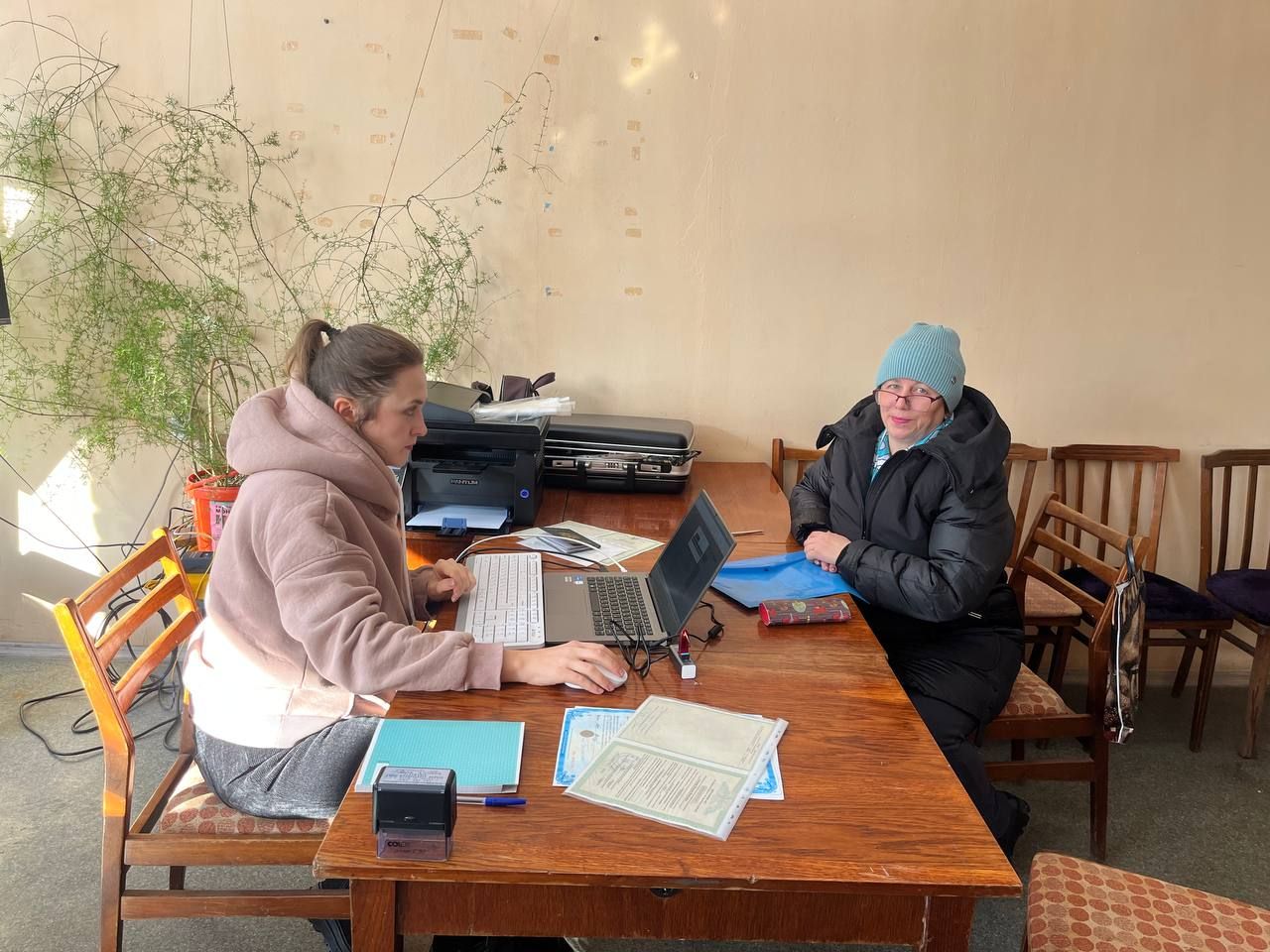Сегодня 28.01.2026г. на территории Великочерниговского отдела жизнеобеспечения в с.Червоный Жовтень, был проведён выездной приём граждан специалистами МФЦ