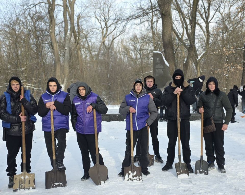 Сегодня ребята вышли, чтобы почистить снег и подготовить место в Гремучем лесу у памятника на месте расстрела подпольщиков Олега Кошевого, Любови Шевцовой, Семена Остапенко, Дмитрия Огурцова и Виктора Субботина в 1943 году. Эта акция — дань уважения и памяти тем, кто проявил мужество и героизм в трудные времена.