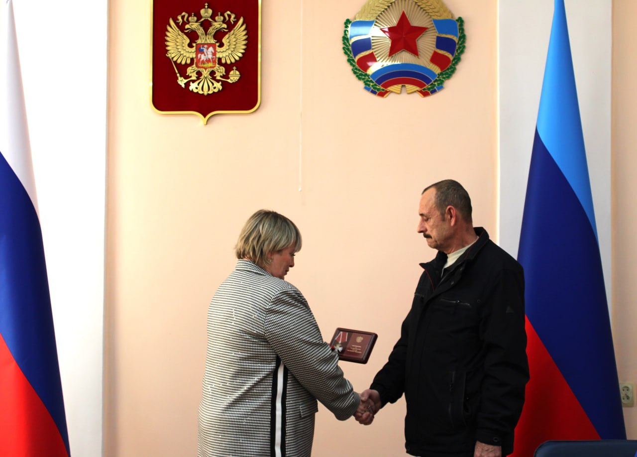Глава Белокуракинского округа Ольга Кучерявая вручила государственную награду – Орден Мужества отцу погибшего героя, участника специальной военной операции