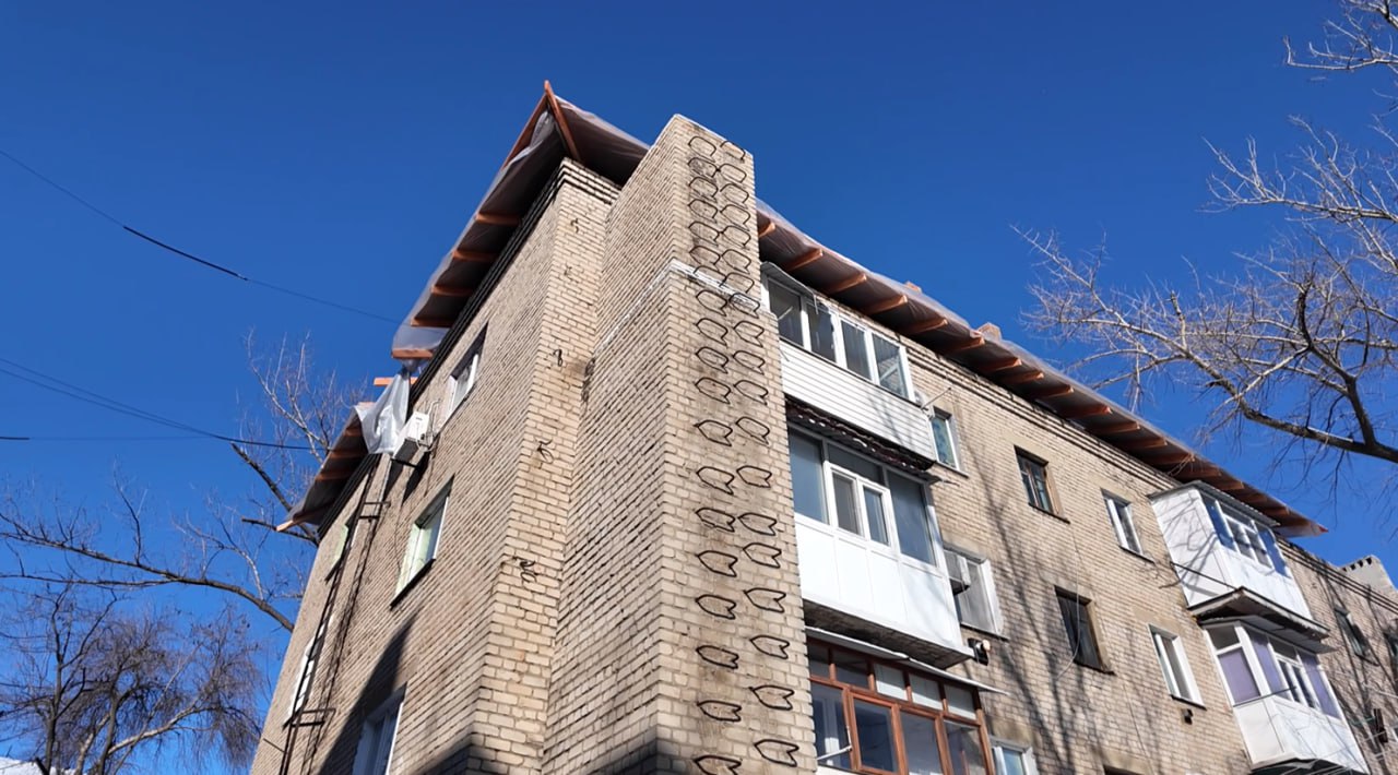 Тюменские специалисты начали выполнять работы по укладке парапета кровли на ул. Коцюбинского, 4 в Молодогвардейске