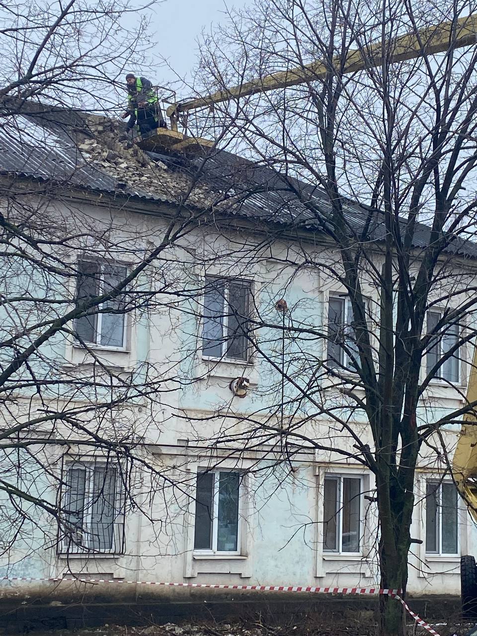По адресу г. Старобельск, ул. Комунаров, 86 оперативно устранены последствия обрушения дымохода. Сотрудники МБУ «Благоустройство» провели обрезку деревьев, угрожающих целостности кровли дома, и предоставили автовышку, чтобы специалисты управляющей компании могли безопасно подняться на крышу для ремонта разрушенного дымохода.