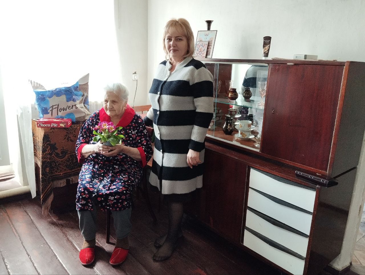 В преддверии праздника 8 марта сотрудники отдела жизнеобеспечения пгт Кленовый посетили долгожительницу пгт Кленовый Гриценко Марию Андреевну 1929 года рождения, которая имеет статус «дети войны».