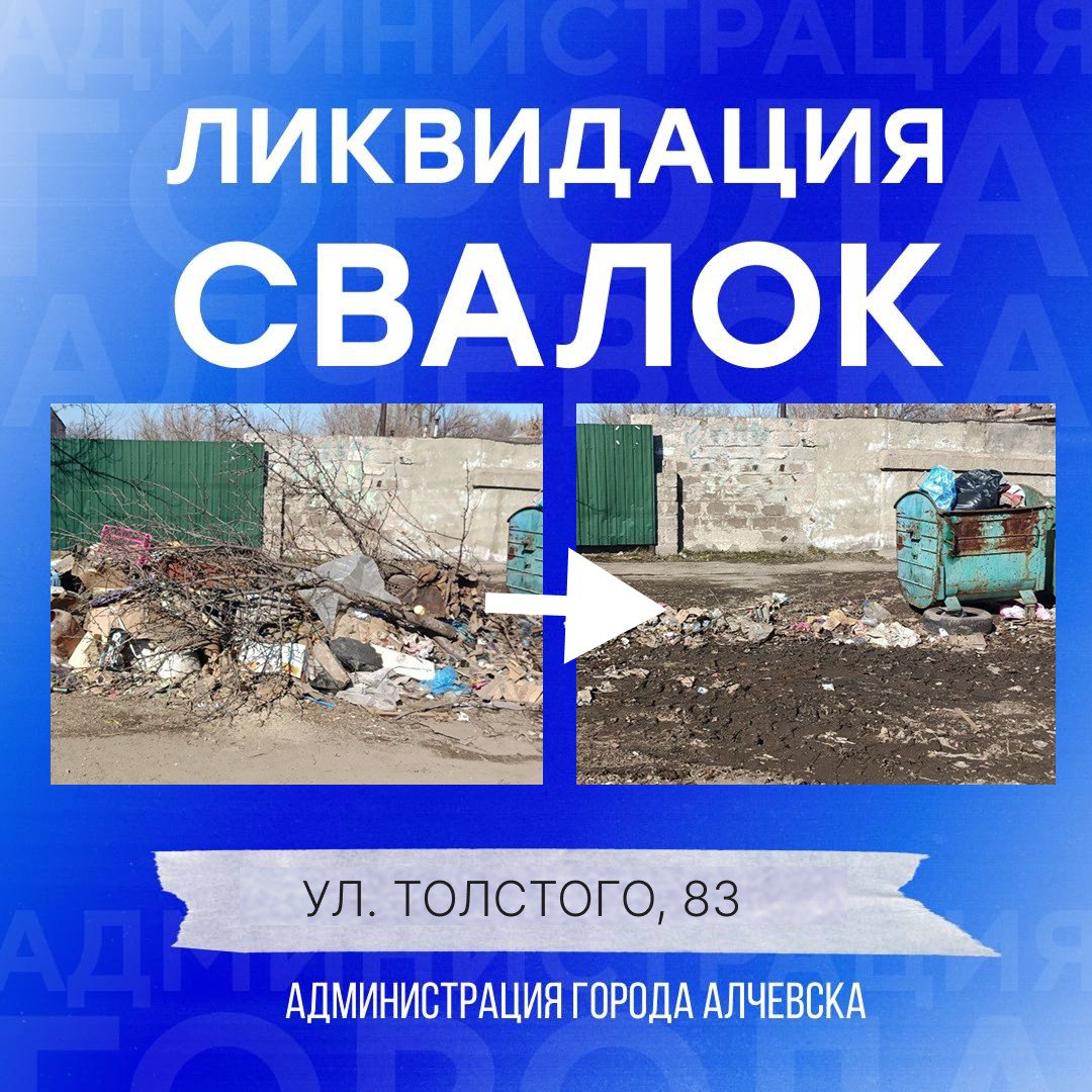 Работниками МУП «Экотранссервис города Алчевска ЛНР» и МУП «Служба дорожного хозяйства и благоустройства города Алчевска ЛНР» ежедневно на территории города выполняется вывоз твердых коммунальных отходов и уборка свалок.