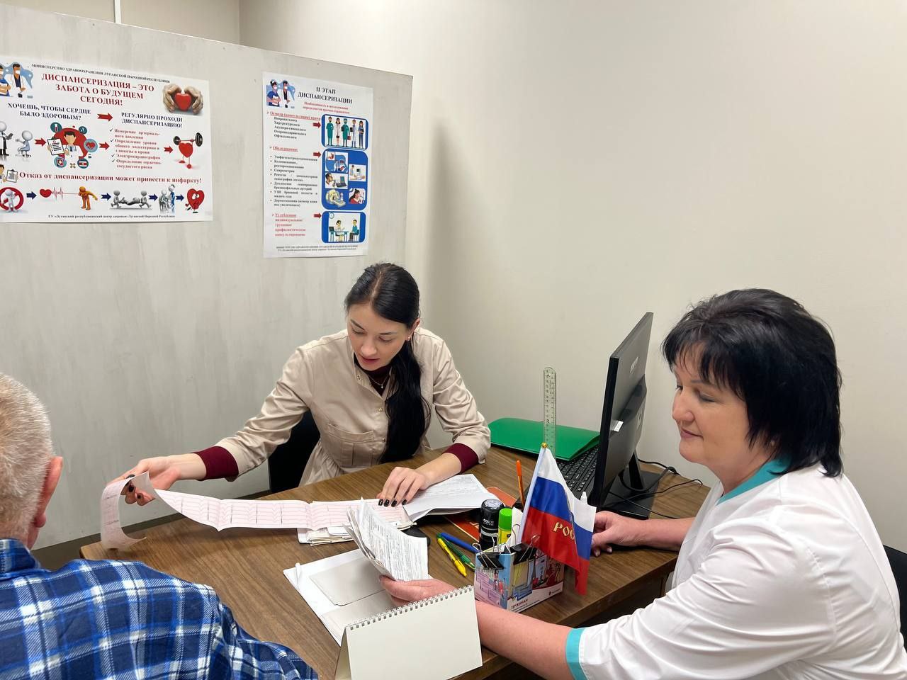 Приём жителей провели специалисты: терапевт, отоларинголог, офтальмолог, акушер-гинеколог и акушерка.