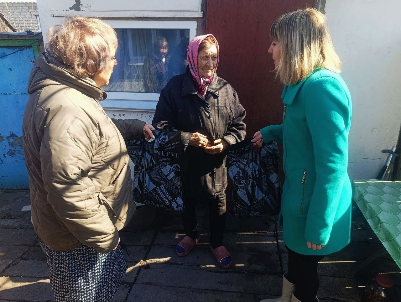 Сотрудники отдела жизнеобеспечения пгт Ясеновский, пгт Пролетарский Администрации городского округа город Ровеньки оказали помощь одинокой пожилой жительнице пгт Пролетарский, Мирошниковой Екатерине Григорьевне, 1945 г.р. в виде продовольственного набора.