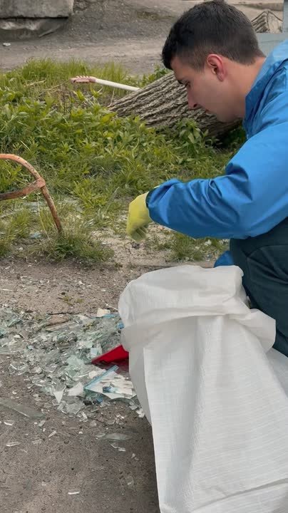 Михаил Голубович: *Активисты Молодой Гвардии Единой России в ЛНР не остались в стороне – ребята принимают активное участие в уборке территории жилых домов после обстрелов со стороны ВСУ