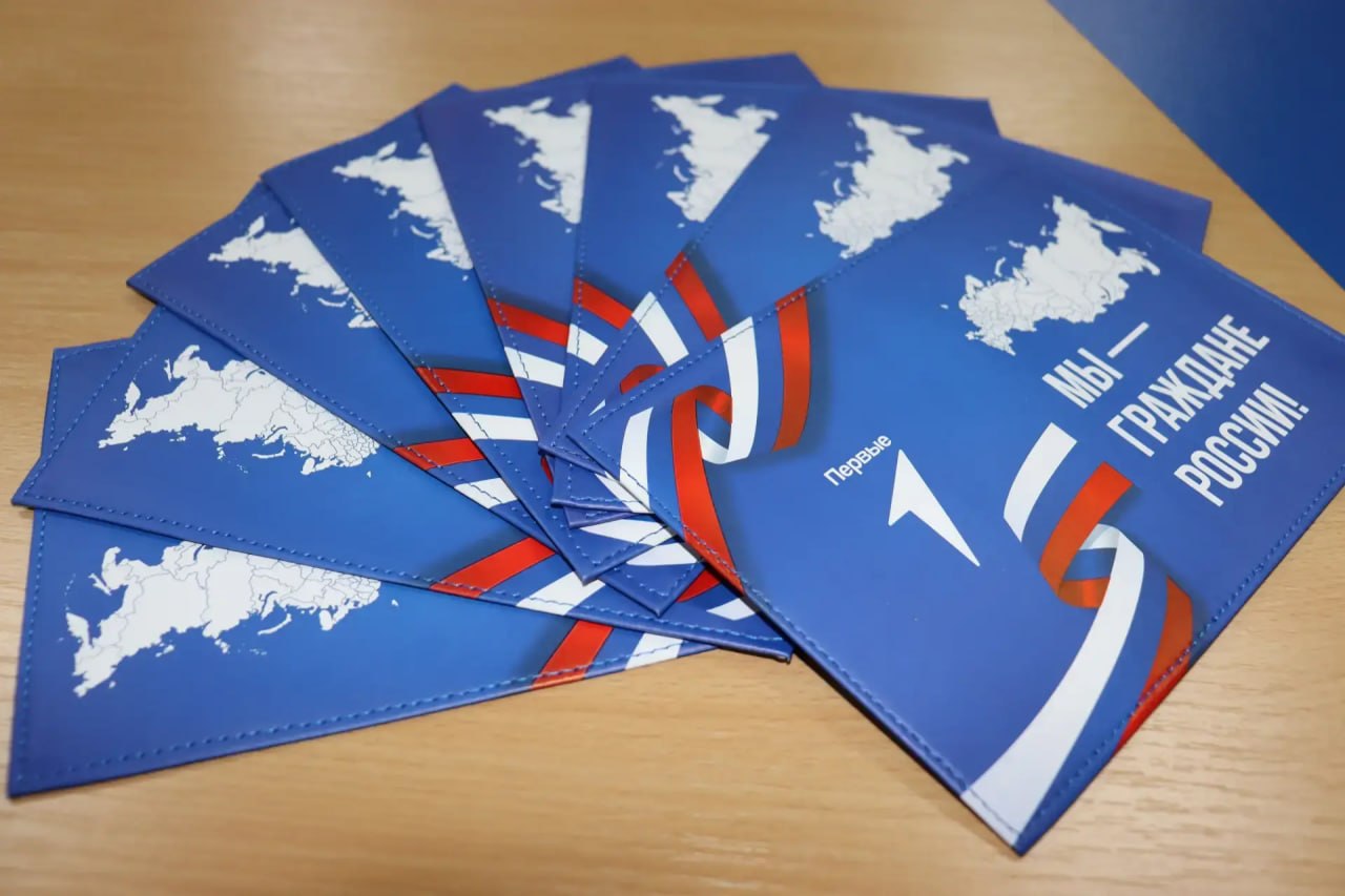 Мы добавили к поздравлениям памятные подарки, а «Движение Первых» подготовило значки и тематические обложки для паспортов.