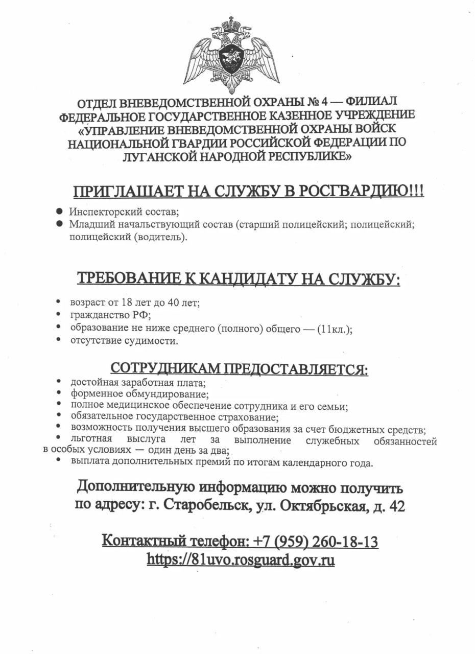 Приглашаем на службу в РОСГВАРДИЮ