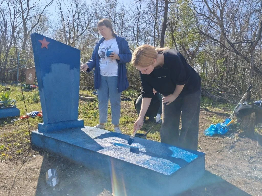 Ребята собрали мусор, очистили памятник от загрязнений и обновили его покраску.